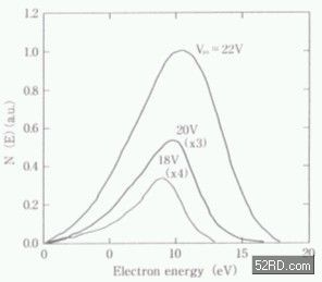 如圖2所示的能量分佈峰值位置,亦即電子數(shù)最多的能量,理論上是最大能量的60%約在10eV處,即使如此若與其它種類的電子源比較時,很明顯的是BSD具備很高的能量。另一個特殊現(xiàn)象是該能量分佈與施加電壓具有依存性,也就是說隨著VPS的增加,峰值能量Emax與最大能量會逐漸移至highenergyside,這意味著BSD釋放的電子在NPS層幾乎未散亂,如果在低溫環(huán)境下測試釋放電子的能量分佈,上述彈道電子釋放更加明顯,而且能量分佈幅度更加狹窄(峰值能量EP朝最大能量Emax方向移動)。