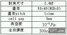 圖10表4分別是利率BSD技術(shù)制作之2.6吋彩色FED外觀圖與規(guī)格;由于BSD的電子發(fā)射源可在大cellgap環(huán)境下,以垂直方式在涂有螢光體的面板上產(chǎn)生圖樣(pattern),因此祇要驅(qū)動電路與驅(qū)動方式經(jīng)由最加化設(shè)計(jì),便可獲得令人滿意的影像顯示效果。