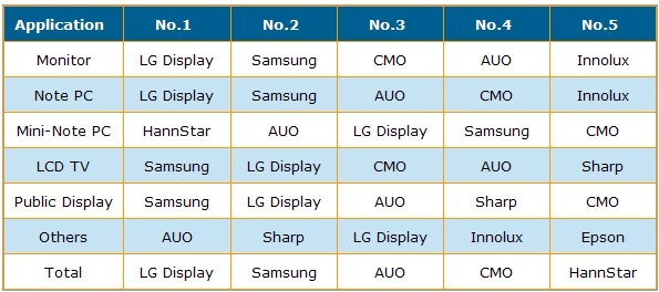Source: DisplaySearch Quarterly Large Area TFT LCD Shipment Report.