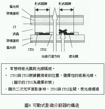 只需關(guān)閉電子驅(qū)動(dòng)的液晶顯示器的shutter,便可獲得與一般平面顯示器同等質(zhì)的二次元影像。