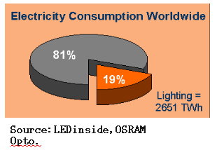 依現(xiàn)階段照明占全球電力消耗的比重達19%,耗能總量達到2651 TWH。如果能夠?qū)F(xiàn)有的光源替換成節(jié)能光源,預(yù)計將可以省下30%能源消耗。若再進一步將節(jié)能光源與感測器、智能電網(wǎng)等相關(guān)應(yīng)用作結(jié)合,預(yù)計還可以再節(jié)省30%的能源消耗。 如果到2030年能夠節(jié)省50%的能耗,相當(dāng)于減少20億桶的石油的二氧化碳排放量。