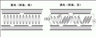 所以IPS的驅(qū)動(dòng)電壓會(huì)較高,一般需要15伏。由於電極在同一平面會(huì)使開口率降低,減少透光率,所以IPS應(yīng)用在LCDTV上會(huì)需要更多的背光燈如圖,細(xì)條型的正負(fù)電極間隔排列在基板上,有些類似早期的VA模式液晶。把電壓加到電極上,原來平行於電極的液晶分子會(huì)旋轉(zhuǎn)到與電極垂直的方向,但液晶分子長軸仍然平行於基板,控制該電壓的大小就把液晶分子旋轉(zhuǎn)到需要的角度,配合偏振片就可以調(diào)制極化光。
