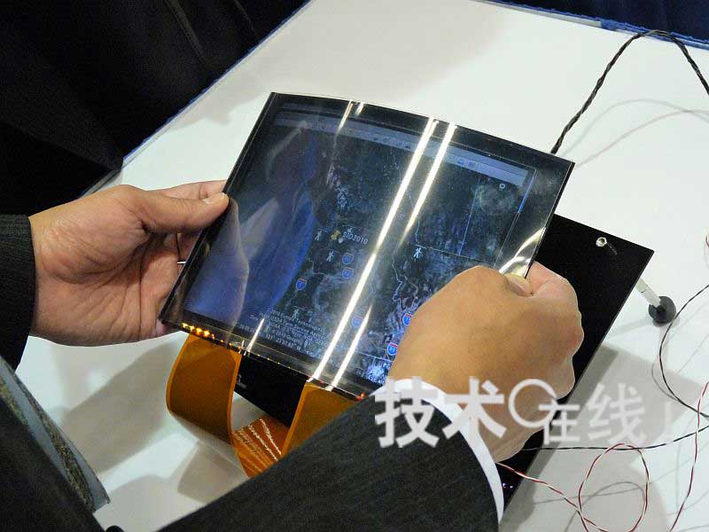 東芝開發(fā)出了可通過彎曲顯示器來放大或縮小顯示圖像的柔性液晶面板,并在全球最大的顯示器國際會議“SID 2010”上進行了發(fā)布(論文編號:54.4L)。在AUTHOR INTERVIEWS上,東芝向觀眾演示了通過實際彎曲液晶面板,來放大或縮小畫面上顯示的“Google Earth”航攝照片。這種利用柔性顯示器特點的直觀操作,吸引了許多技術(shù)人員的關(guān)注。