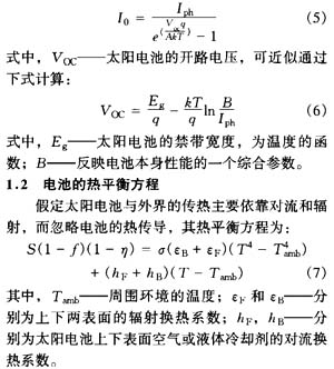 由上述模型可以看出,太陽電他的輸出特性和工作溫度不可能通過分析解來得到,必須通過迭代和數(shù)值模擬的方法得到。計(jì)算方法是通過熱平衡方程得到太陽電他的工作溫度,然后通過太陽電他的電特性方程計(jì)算電他的伏安特性,得到太陽電他的峰值輸出功率、轉(zhuǎn)換效率等參數(shù),然后再把新的轉(zhuǎn)換效率代入熱平衡方程進(jìn)行新一輪計(jì)算,直到滿足計(jì)算精度為止。