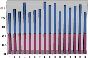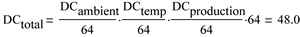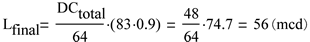 從上可見,運用48的組合點校正值即可得到56mcd的期望亮度。請注意,由于溫度引起亮度下降,故本計算中的起始電流被設(shè)置為起始生產(chǎn)電流的90%。