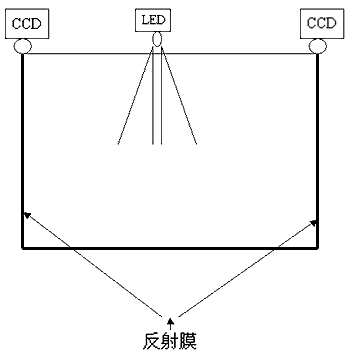 CCD光掃描原理是:在顯示區(qū)域的一邊設(shè)置兩個(gè)固定距離的CCD線陣探測(cè)器和紅外發(fā)射器,對(duì)準(zhǔn)顯示區(qū)域。在顯示區(qū)域的另外三邊設(shè)置可以反射光線的反射膜,在沒有物體阻擋時(shí),線陣CCD檢測(cè)到的是一條完整的光帶。當(dāng)有物體在顯示區(qū)域中擋住光線傳播路徑時(shí),在線陣CCD檢測(cè)到的光帶中會(huì)出現(xiàn)無反光區(qū)域,分布在兩個(gè)角的CCD分別檢測(cè)到的遮擋區(qū)域反應(yīng)在線陣CCD的對(duì)應(yīng)區(qū)域,根據(jù)對(duì)應(yīng)的區(qū)域計(jì)算出物體在顯示區(qū)域的位置,是一種交叉點(diǎn)測(cè)試定位方式。