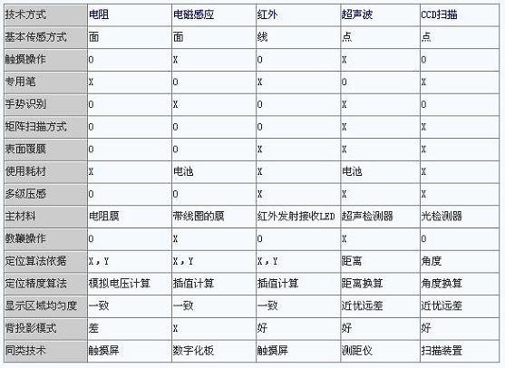 綜上所述,交互式電子白板采用不同的定位方式,則會(huì)有不同的特點(diǎn)和性能。下表將上面的文字內(nèi)容進(jìn)行總結(jié)和對(duì)比,相信讀者能分清各種技術(shù)的差異,選擇適合自己的一款產(chǎn)品。