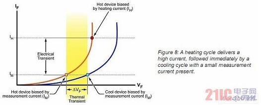 假設(shè)LED的溫度與其兩端的前向電壓降成線性關(guān)系。因此,通過觀察電壓降可以精確地推算出溫度的變化。為了很好地進行這個測試,測試系統(tǒng)的硬件和軟件必須滿足一定的要求。例如MentorGraphics的MicReD商業(yè)自動化測試系統(tǒng)就是滿足此類要求的典型設(shè)備。