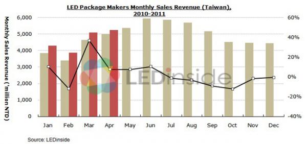 - 011年4月臺灣上市上柜LED廠商營收總額約96.2億元