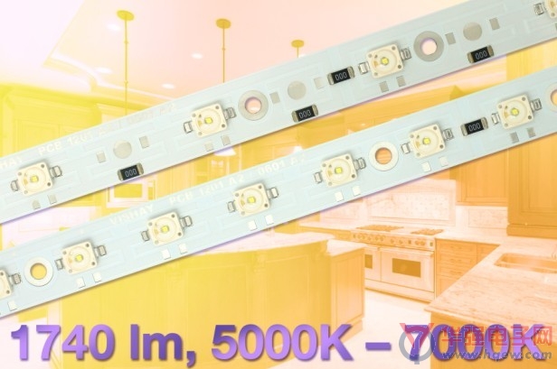 日前,Vishay Intertechnology, Inc.宣布,推出3款安裝了6個或12個高亮度LED的冷白光LED模塊--- VLPC0601A2、VLPC1201A2J、VLPC1201A2。VLPC0601A2在一個240mmx14mm的PCB板上裝了6個LED,光通量為870流明;VLPC1201A2J在240mx14mm的PCB板上安裝了12個LED,光通量為1740流明;把VLPC1201A2J簡單地分成兩半,每一半就是一個VLPC1201A2模塊,每個模塊的尺寸是120mmx14mm,裝有6個LED,光通量為870流明。這些模塊使設(shè)計者能夠為其應(yīng)用選擇最合適的PCB和光強(qiáng)。