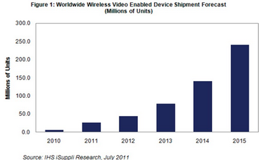 據(jù)IHS iSuppli公司的報告:“From Wi-Fi to Wireless HDMI: Video Technology Battle Rages On”,無線視頻技術(shù)正在從聯(lián)網(wǎng)家庭走向移動領(lǐng)域,促使未來五年全球無線視頻設(shè)備的出貨量將增長近39倍。