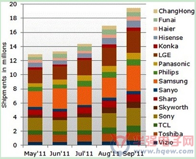 2011年5~9月液晶電視品牌商生產(chǎn)計(jì)劃 (單位:百萬臺(tái))