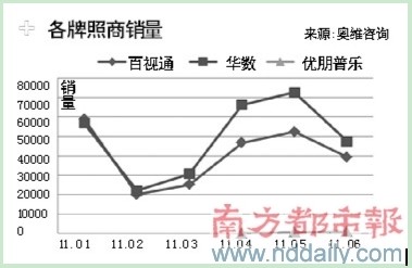 智能電視的興起不僅給量額齊跌的彩電市場染上一抹亮色,也給內(nèi)容端的上位提供契機(jī),數(shù)據(jù)顯示,由于華數(shù)、百視通較早拿到牌照,已在終端市場上形成了雙雄鼎立的局面。