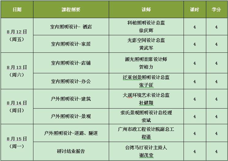 城市建設(shè)的發(fā)展,人居環(huán)境的改善,要求設(shè)計師通過科學(xué)的照明設(shè)計來達到各種照明環(huán)境的特定要求,廣東光亞照明研究院聯(lián)合CLDA華人照明設(shè)計師聯(lián)合會,繼《照明設(shè)計基礎(chǔ)班》成功舉辦后,于2011年8月12-15日,開展為期四天的《照明設(shè)計專業(yè)培訓(xùn)班》,旨在培養(yǎng)對室內(nèi)外光環(huán)境進行綜合設(shè)計的人才,提高照明設(shè)計人員的專業(yè)素質(zhì)。