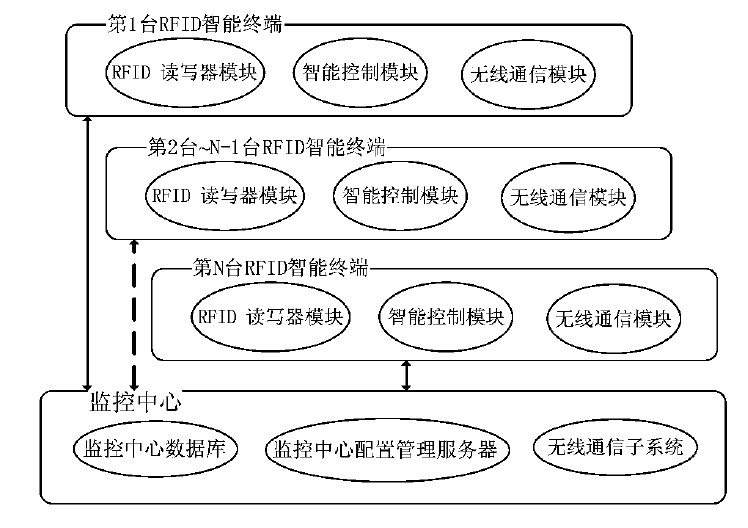 智能終端有備用電池,以確保交流供電中斷后系統(tǒng)仍能正常運行。RFID 智能終端的數(shù)據(jù)保存在FLASH 中,保證數(shù)據(jù)不丟失以及保障系統(tǒng)同監(jiān)控中心全天候通訊。監(jiān)控中心配備UPS 不間斷電源,保證主機正常運行和與智能終端之間的通訊。