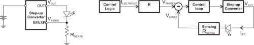 將閃光燈 LED 與一個電流檢測電阻串聯(lián),然后通過一個升壓轉(zhuǎn)換器來驅(qū)動,這是一種簡單的方法。圖 1 描述了這種方法。