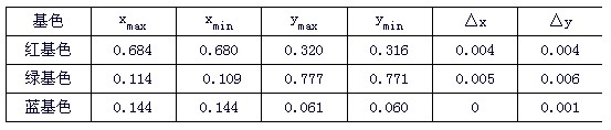 表2 三基色色坐標變化的峰值數(shù)據(jù)
