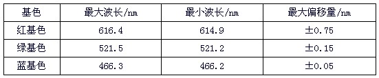 由表3可見,在本次衰減過程中,各基色波長偏移量較小,對顯示屏圖像顯示質(zhì)量影響不大;同時,各基色的波長偏移量體現(xiàn)出一定的差異性。