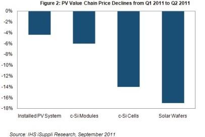 晶圓領域直到最近還是PV價值鏈中利潤比較豐厚的環(huán)節(jié)。但是,產能大量增加,包括垂直整合型企業(yè)增加的產能,導致上半年晶圓面臨降價壓力。這進而降低了生產電池的成本,導致模組的價格下降。