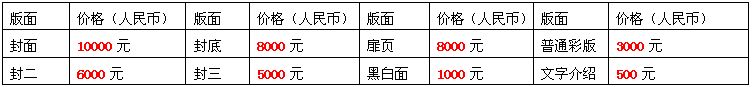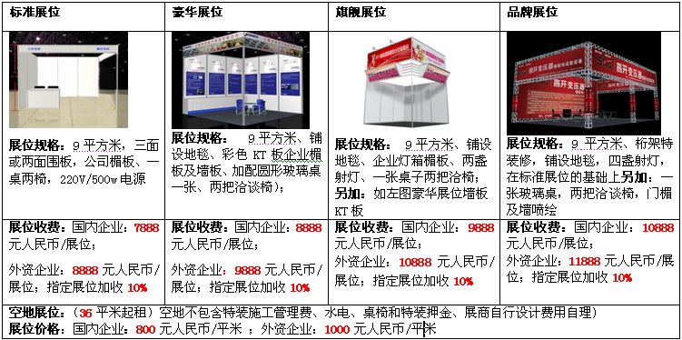 1、各種展位價格表