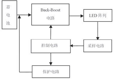 圖2 可知,Buck-Boost 電路將蓄電池電能變換后對LED 陣列供電,采樣電路對流過LED 的電流采樣,將信號傳到控制電路??刂齐娐贩治霾蓸有畔?,調(diào)節(jié)Buck-Boost 電路中開關(guān)管的占空比,保證通過LED 電流恒定;當(dāng)電路出現(xiàn)異常時,通過控制保護電路切斷電源,保證LED 不受損害。一般情況下,LED 驅(qū)動電路必須滿足下列要求: