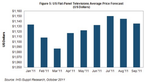 IHS公司預(yù)測,電視轉(zhuǎn)播橄欖球賽季,以及年底假日銷售季促銷活動(dòng)開始,預(yù)計(jì)未來幾個(gè)月電視價(jià)格將會(huì)下降,零售商可能出清庫存,準(zhǔn)備進(jìn)貨2012年新款產(chǎn)品。在經(jīng)濟(jì)不景氣之際,美國市場對價(jià)格仍然高度敏感,品牌廠商可能極其重視質(zhì)量和創(chuàng)新,以此來打敗競爭對手。