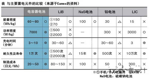 瀨和表示,此次的電容器電池在成本方面同樣優(yōu)于LIB。與正極使用鋰金屬氧化物的LIB相比,Eamex公司的導(dǎo)電性高分子膜可采用基于電解聚合法的卷對卷工藝制造。其中,通過采用廉價的聚苯胺(Polyaniline)“大幅降低了成本”(瀨和)。但負(fù)極需要預(yù)先為碳類材料注入鋰離子,這部分需要花費成本。使用金屬鋰時也比LIB使用活性炭造價高。估計進(jìn)行成本比較時需要綜合考慮這一點。