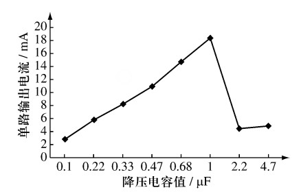圖4 實(shí)測輸出電流與降壓電容的關(guān)系