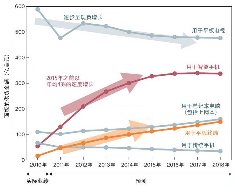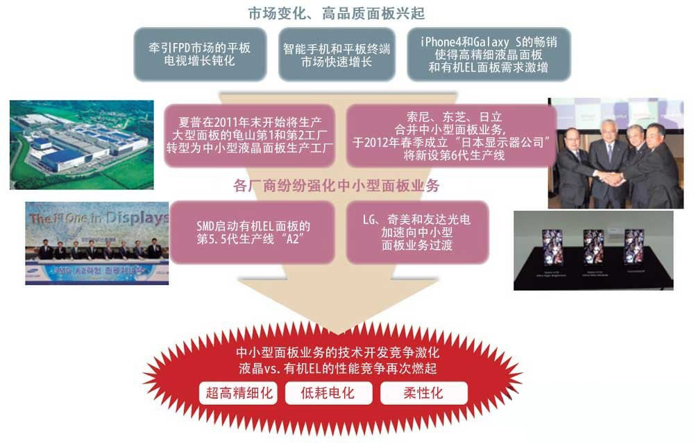 日韓臺的面板廠商開始將業(yè)務重心從電視機用大型面板轉向智能手機和平板終端使用的中小型面板。今后,技術開發(fā)競爭將越來越激烈。
