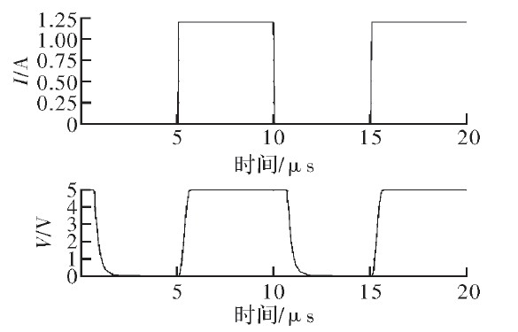 為驗(yàn)證文中提出的電流采樣電路的功能,結(jié)合滯環(huán)控制電路及外部負(fù)載在Cadence中進(jìn)行了仿真。圖5為輸入電壓20 V時(shí)采樣電流、電壓與負(fù)載電流的關(guān)系。由圖可見,采樣電流與采樣電壓隨負(fù)載電流同相周期性變化,周期約為1.2μs.