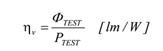 發(fā)光效率ηv的計算如下列公式(6)所述,為待測固態(tài)照明產(chǎn)品的總光通量ΦTEST除以總消耗功率PTEST,此指標(biāo)是用以評估固態(tài)照明電光效能轉(zhuǎn)換的重要指標(biāo)。