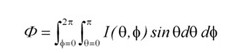 藉由量測光強度分布I(θ,Φ)如圖9所示,光通量可由公式(4)求得。若以亮度探頭量測照度值E(θ,Φ)進行校正,光通亮的計算方式可由公式(5)計算出來。其中γ為相對于亮度探頭參考平面的旋轉(zhuǎn)半徑。量測光強度時,γ須要有足夠的長度。