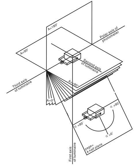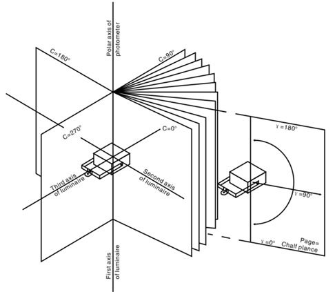 LM-79特別說明使用配光曲線儀量得的光強度分布數(shù)據(jù),須依照IES LM-63規(guī)范定義的格式,形成IES電子文件,以方便后續(xù)于照度分度上的模擬計算使用。