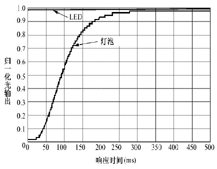 圖4 LED 與傳統(tǒng)光源點(diǎn)亮相應(yīng)時(shí)間對比