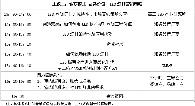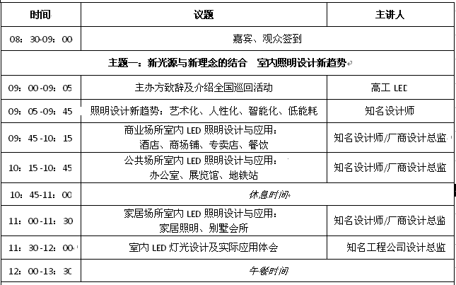2012是高工LED的渠道年、服務(wù)年,為推廣LED照明節(jié)能產(chǎn)品,分享LED照明設(shè)計(jì)理念,增進(jìn)LED照明廠商、設(shè)計(jì)師、工程商、經(jīng)銷商之間的交流與合作,推動LED燈具在家居、酒店、別墅會所、商場鋪、專賣店、餐飲、辦公、展館、地鐵站等室內(nèi)照明中的應(yīng)用。高工LED將進(jìn)行第三次長征(2010年全國LED產(chǎn)業(yè)調(diào)研、2011年全國燈具城調(diào)研),由高工LED、高工LED商城、《高工LED產(chǎn)品與市場》雜志聯(lián)合全國各地室內(nèi)裝飾設(shè)計(jì)協(xié)會、建筑設(shè)計(jì)機(jī)構(gòu)、照明及LED行業(yè)協(xié)會共同舉辦的“2012 LED照亮中國之旅”渠道開拓活動-室內(nèi)LED照明設(shè)計(jì)全國巡回研討會暨全國室內(nèi)LED照明設(shè)計(jì)大賽,將于4‐8月在北京、西安、南京、杭州、上海、武漢、成都、廈門、深圳、廣州、中山11個重點(diǎn)城市舉辦。整個巡回研討會將有全國近1500名來自設(shè)計(jì)機(jī)構(gòu)、工程公司、經(jīng)銷商等單位專業(yè)人士參加,活動將覆蓋超過20萬設(shè)計(jì)、工程、經(jīng)銷等各渠道群體。