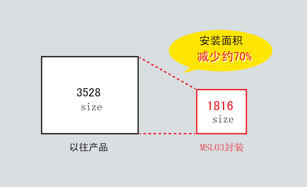 作為反射型貼片LED,是業(yè)界最小級別的1816尺寸,大幅減少安裝面積。