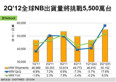 - 2012年全球NB出貨成長樂觀可達17%以上