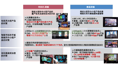 2012年,SMD和LG顯示器計(jì)劃量產(chǎn)電視用55英寸面板,友達(dá)光電(AUO)和奇美電子(CMI)計(jì)劃量產(chǎn)智能手機(jī)用中小型面板。日本廠商中,日本顯示器正在以2013年量產(chǎn)為目標(biāo)。索尼和松下也將共同開發(fā)大尺寸面板。隨著各競爭公司紛紛表明涉足,“如果美國蘋果等大客戶有需求,夏普應(yīng)該也不會(huì)拒絕”(顯示器相關(guān)分析師)。