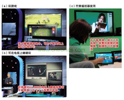 通過Xbox 360收看視頻時,也可利用平板終端或智能手機。外出時使用平板終端收看的視頻,回家后利用連接到Xbox 360的電視可繼續(xù)觀看。據(jù)稱,通過使用無線LAN等,使Xbox360與便攜終端實現(xiàn)了聯(lián)動。