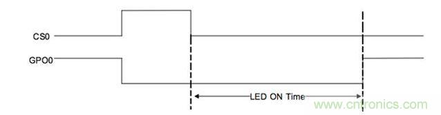 通常對(duì)于電容式按鍵來(lái)說(shuō),LED直接位于按鍵之下,從中心位置發(fā)光。用戶(hù)手指放在按鍵上,LED就會(huì)被隱藏起來(lái)。在此情況下,如果用戶(hù)手剛從按鍵上拿開(kāi)LED燈就馬上關(guān)閉,那么用戶(hù)可能難以確定按鍵操作到底成功沒(méi)有。為此,我們可以讓LED在觸摸結(jié)束后保持“開(kāi)啟”一小段時(shí)間,從而為用戶(hù)提供更好的視覺(jué)反饋。這種特性就叫LED開(kāi)啟時(shí)間,如圖2所示。