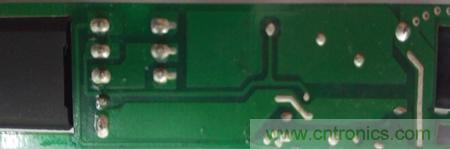3、輸入輸出線焊盤孔太小、距離PCB板邊太近,也沒有做防拉設(shè)計(jì)和防堵孔設(shè)計(jì),這樣的設(shè)計(jì)一方面會(huì)造成輸入輸出線容易斷裂;另外一方面在生產(chǎn)過(guò)波峰焊過(guò)程中焊盤容易堵死,后續(xù)工序焊接線時(shí)需要人工將焊盤孔打開造成浪費(fèi)生產(chǎn)工時(shí)。