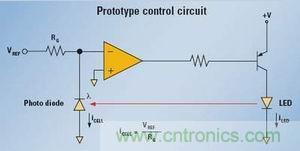 【導(dǎo)讀】在利用光來控制應(yīng)用的過程中,要長期保持原始設(shè)定的發(fā)光強(qiáng)度需要一個控制電路來監(jiān)控發(fā)光狀況,并控制供給光發(fā)射器件的電流以保持輸出恒定。而采用一個簡單的運(yùn)算放大器電路就做到,即便發(fā)光器件老化,通過調(diào)整LED電流,一個控制環(huán)也可維持恒定的光強(qiáng)度。