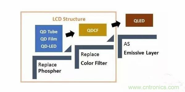 大致可以分為三個階段:一、取代傳統(tǒng)的發(fā)光熒光粉;二、去掉彩色濾光片;三正式成為發(fā)光層(也就是目前OLED的像素點(diǎn)自發(fā)光的形式)