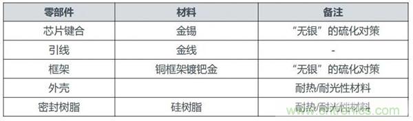 其中硫化氣體由密封樹脂/引線框架界面、引線框架/外殼界面、密封樹脂侵入,可能發(fā)生硫化的位置有4個(gè)位置: