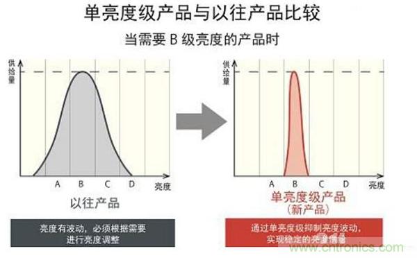 單亮度等級(jí): 羅姆將ABCD即紅藍(lán)黃白的亮度更細(xì)分化,可從一般市場中的赤橙黃綠青藍(lán)紫細(xì)到17種顏色。