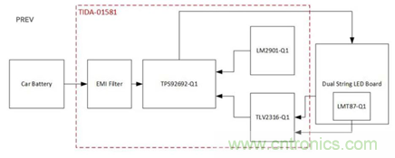 圖示1-大聯(lián)大世平推出基于TI產(chǎn)品的車(chē)輛日間行車(chē)燈LED驅(qū)動(dòng)器參考設(shè)計(jì)系統(tǒng)架構(gòu)圖