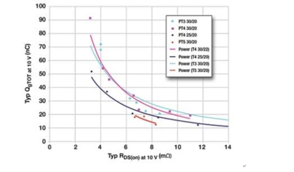 RDS(ON)直接與傳導損耗有關(guān),而Qg直接與開關(guān)損耗有關(guān)。FOM越小,性能越好。