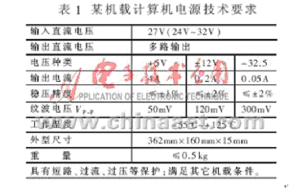 某機(jī)載計(jì)算機(jī)對(duì)電源部件的技術(shù)要求見表1。