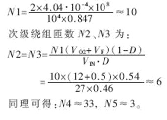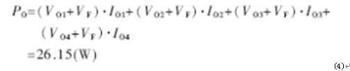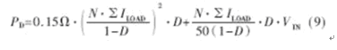 損耗功率PD主要取決于VI、多路輸出最大負(fù)載電流之和ΣILOAD以及主功率線圈比N等,其近似計(jì)算公式如下: