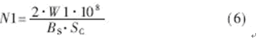 其中,BS為磁感應(yīng)強(qiáng)度,SC為脈沖變壓器磁芯有效截面積:BS=104Gs,SC=0.847cm2。則由(6)式可知:
